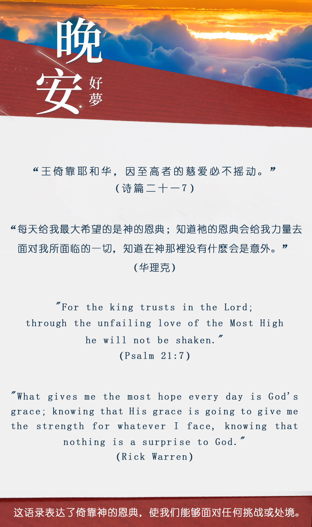 与大家分享属灵名言,愿主耶稣基督的「恩典」与「平安」伴你微笑入眠。晚安!