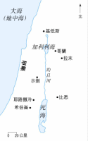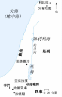 應許地的疆界是從南面尋的曠野和加低斯到北面的利布哈馬和利比拉,從西面大海(即地中海)海岸到東面約旦河,加利利也包括在內。