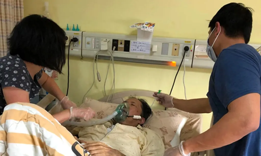 我呼喊完立刻有一隻手從柱子後伸出來,繞過我的身子抓住我的右手腕,幫助我一起拉,我們就一次拉近一兩寸的拉過來,一直拉到我的手到了黑洞的中點,我就聽見一個爆破的大響聲,如同一個巨大的氣球爆破的聲音,那時那幫助我的手,那黑暗的手,那柱子就都不見了,同時上面有許多小東西掉下來。我就醒過來了,看見我妻子和三個孩子都站在我床邊瞪大眼睛看著我。我的妻子告訴我在過去的十天裡她看見我的情形心裡是何等的煎熬。我失去了溝通的能力,會抗拒護士的照護。為了防止我拔除餵食管和呼吸管,他們會限制我手的活動。她非常擔心告知大女兒我長期的昏迷,大女兒知道了就叫了弟弟妹妹和她從美國飛來見我可能是最後的一面。他們看見我的情形都非常傷心。我的妻子告訴他們她很害怕,但還是藉著禱告信靠神。孩子們看見我醒過來了心裡的壓力就減輕了。當我恢復了一些體力時就告訴他們我在昏迷中所經歷的。我們都覺得主了我在黑暗裡的呼求讓我存留在地上。(參見照片1,2,3)