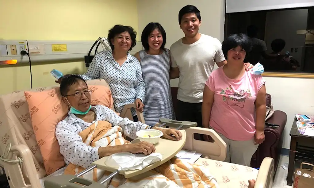 2019年十二月我和我妻子圣业和我女儿恩心到台湾去访问家人。到了两天,圣业就带着恩心飞到曼谷去看她在安养院里的老母亲。她们走了以后,我参观了一个台北世贸馆的展览时感觉发烧不舒服,回家在捷运上临时决定在台大医院下车去急诊检查。经过验血检查就住院等候结果,第二天医生告知我血液有20% 的癌性白血球,加上做骨髓穿刺显示有 50% 的癌性白血球,确定是得了急性骨髓性白血病(AML),是六类白血病中最严重的一类,若是不立刻治疗并做骨髓移植就只能活三个月。台大医院是全台最好的白血病治疗单位,我决定留院接受治疗,就被转入血液肿瘤科的病房准备做六个月的化疗和骨髓移植。幸好我有台湾的健保可以支付一半以上的治疗费用。圣业和恩心从泰国回来就来医院照顾我,后来恩心就跟着一位来台访问的邻居回美国去了。